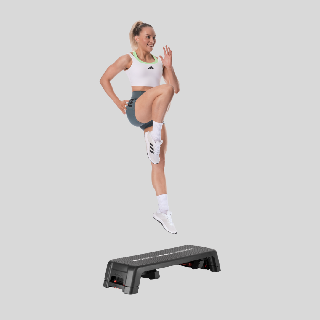 VERSATILE AND FUNCTIONAL - Easy to use: An all-in-one step with integrated risers and click-to-rise functionality – so set up is seamless, adjustments intuitive. There are three heights, and it can even be used as an incline bench.